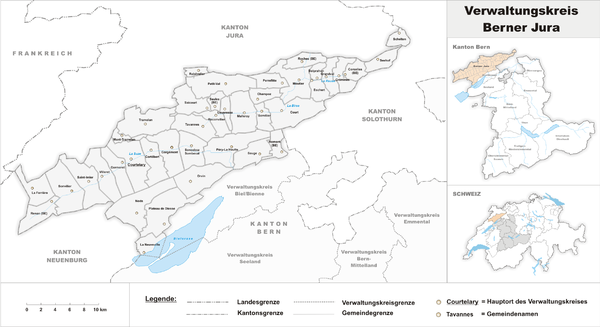 Der Berner Jura ist ein französischsprachiger Teil des Kantons Bern mit rund 52'000 Einwohnern. Traditioneller Hauptort ist Moutier der Sitz des Regierungsstatthalters befindet sich in