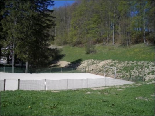 - zwei Tischtennistische, ein Fussballkasten